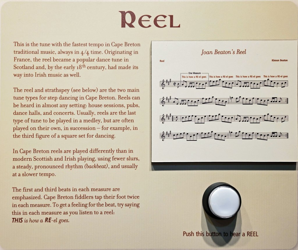 Before we exited Cape Breton Island, we spent a couple of hours at the Celtic Music Interpretive Center in Judique NS, and oh my, we could have spent all day. The exhibits in this small space were superb, with information, instruments, music examples (written and audio) and hands-on learning activities.