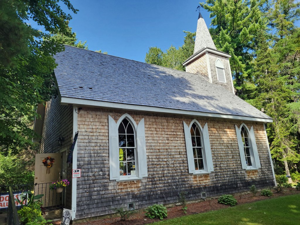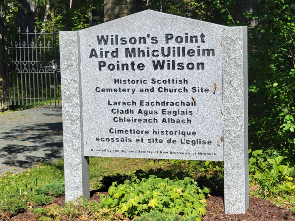 In Derby NB, we visited Wilson’s Point, a Scottish heritage site from the 1760s on the Miramichi River. The highlights included lovely views of the river and Beaubears Island, a replica of the original St. James Presbyterian Church that serves as a visitor center and gift shop, and an historic cemetery with very old headstones. A local group has identified some of the graves and added markers with names and dates adjacent to the originals.